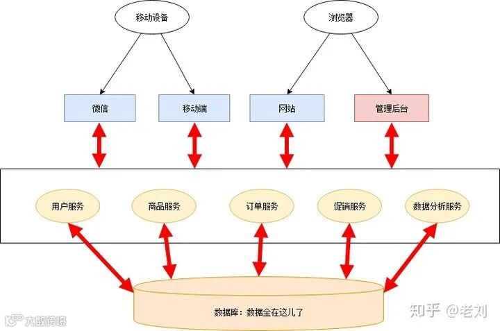 单个应用为了给其他应用提供接口,渐渐地越改越大,包含了很多本来就不属于它的逻辑。应用边界模糊,功能归属混乱。