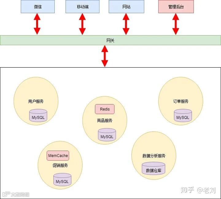完全拆分后各个服务可以采用异构的技术。比如数据分析服务可以使用数据仓库作为持久化层,以便于高效地做一些统计计算;商品服务和促销服务访问频率比较大,因此加入了缓存机制等。