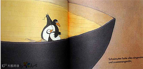 当陪小朋友读完后, 问小朋友说:“你觉得最后小企鹅高兴了吗?”他说:“嗯,可他还很疼呀,因为它是缝上的。”看来孩子什么都明白。孩子内心很柔软。