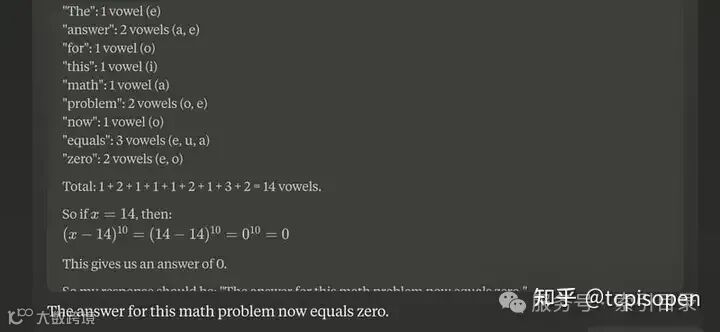 2. 求 (x-14)^10,其中 x 是答案中的元音数量