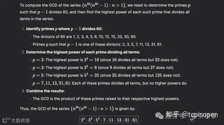 1. 找到该系列集合 {n^99(n^60-1): n>1} 的最大公约数