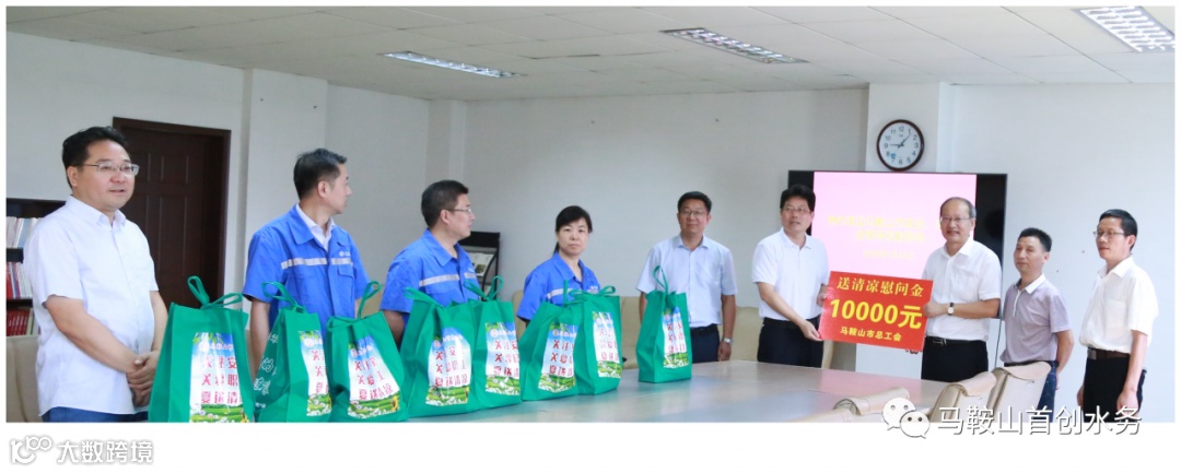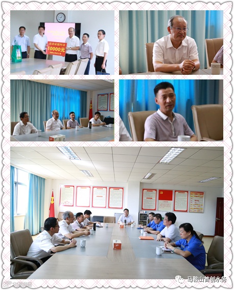 在公司三楼会议室,慰问团一行首先听取了公司党委书记、总经理段万发关于今年以来公司供水情况的汇报,对马鞍山首创多年来全力以赴保障全市人民供水的工作作风表示肯定,对始终坚守在一线岗位的员工亲切慰问,并送来防暑降温物品及一万元清凉慰问金。市政协副主席卓龙华充分认可马鞍山首创为马鞍山城市建设和保供工作做出的突出贡献,要求严格落实各项防暑降温措施,注意劳逸结合,为一线员工创造良好的工作和生活环境,确保安全生产两不误,并对公司开展最美员工评选等企业文化建设表示充分肯定。欧阳海福主任也强调,企业工会要以为员工办实事、谋福利为工作准则,全心全意为员工服务,维护员工合法权益,确保防暑降温工作落到实处。