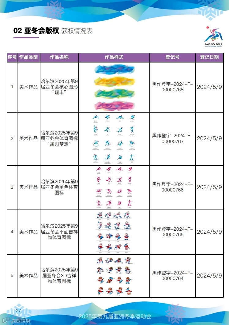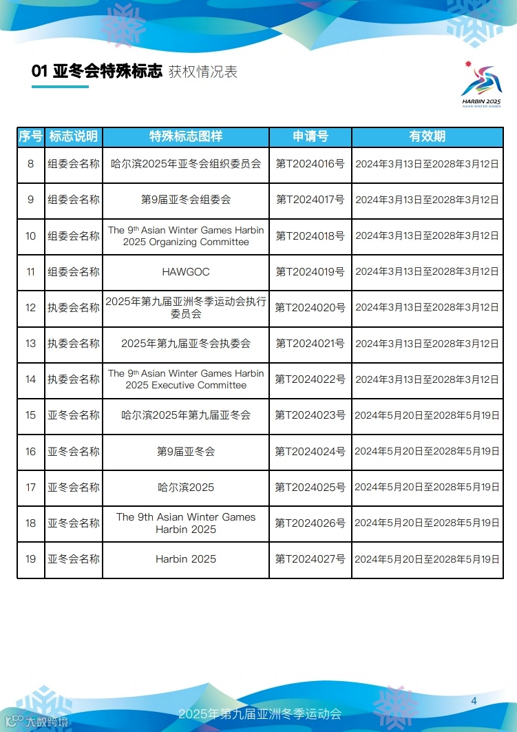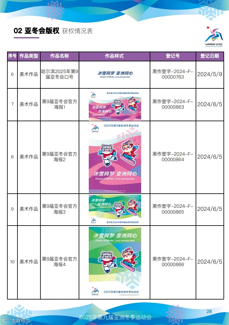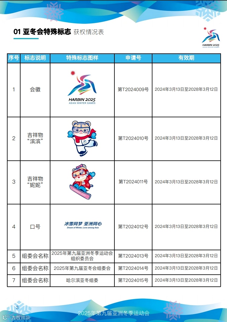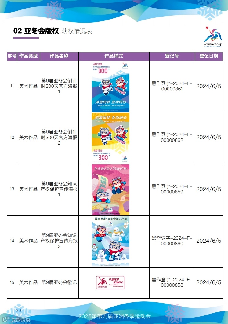 快来看,第九届亚冬会知识产权获权情况!