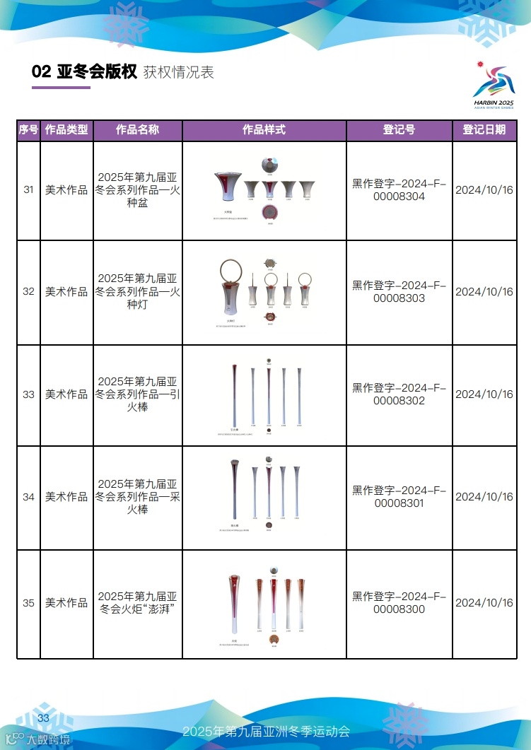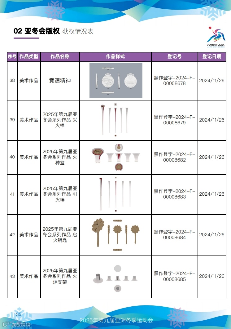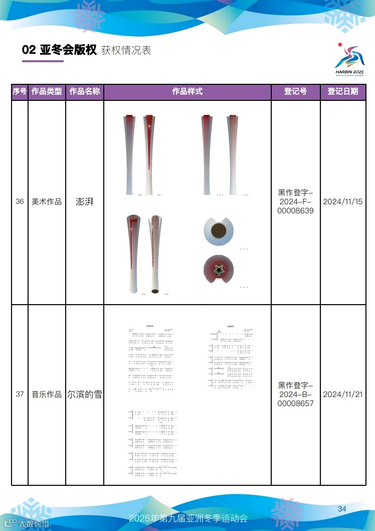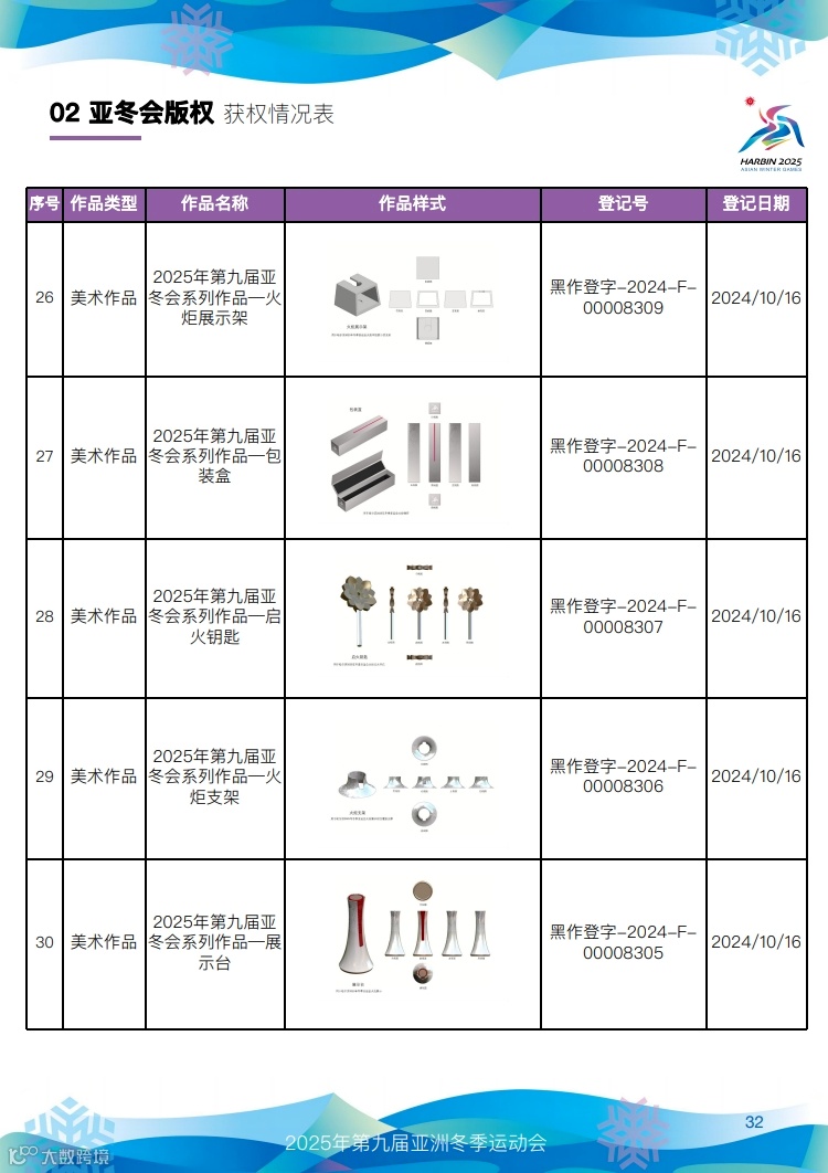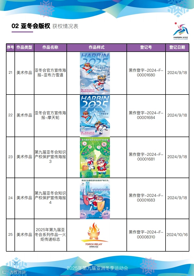 快来看,第九届亚冬会知识产权获权情况!