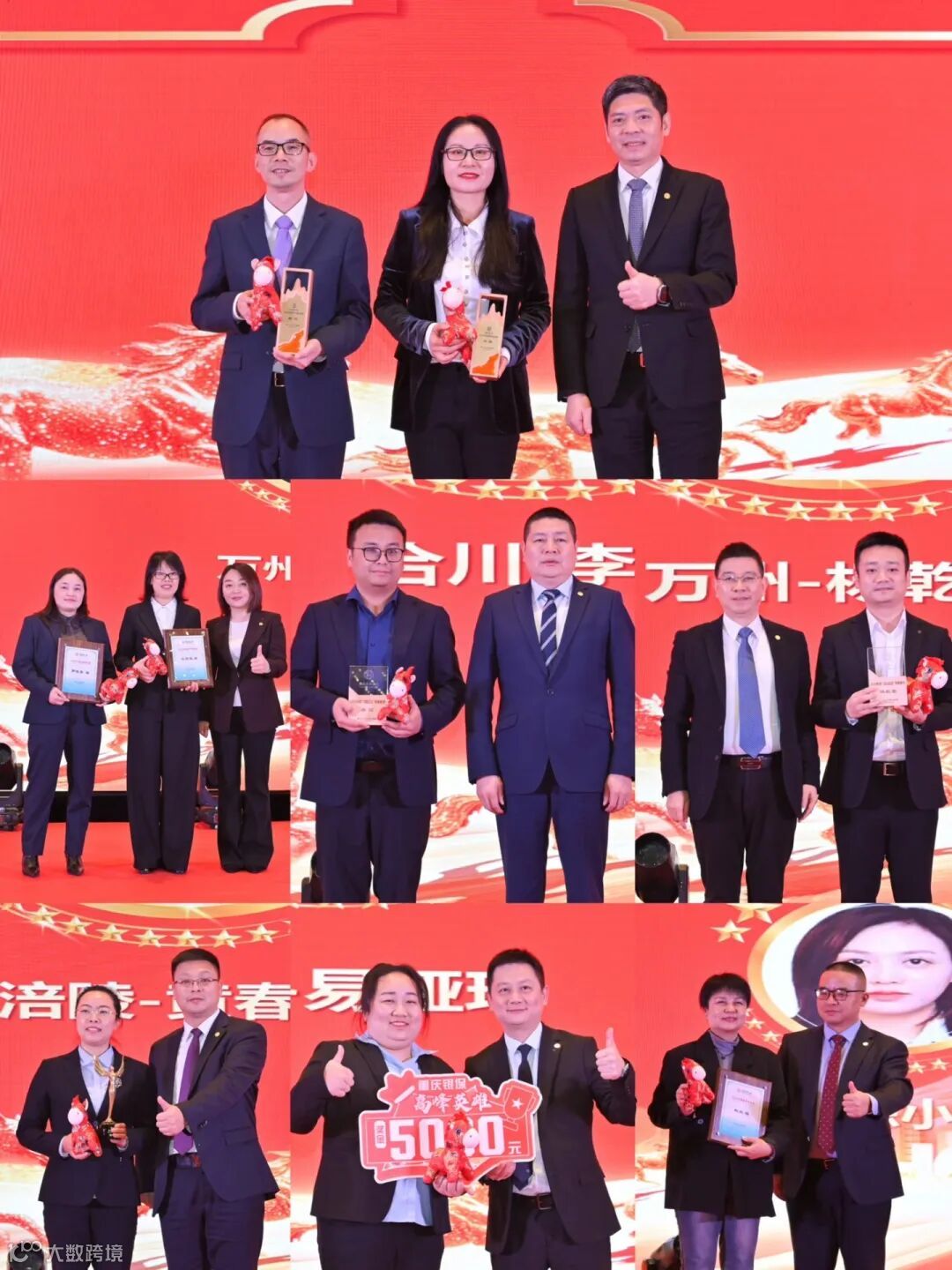 随后,会议对2025年表现优秀的中支、团队和个人进行了表彰。奖项包括司龄10年以上的银保外勤员工、2025年优秀客户经理、优秀营业部经理、优秀总监、渝龙荟精英、总公司龙腾俱乐部达标优秀人员等。压轴环节,冯军总向2025年度达成年度任务的黔江中支和涪陵中支颁发了年度任务达成奖。