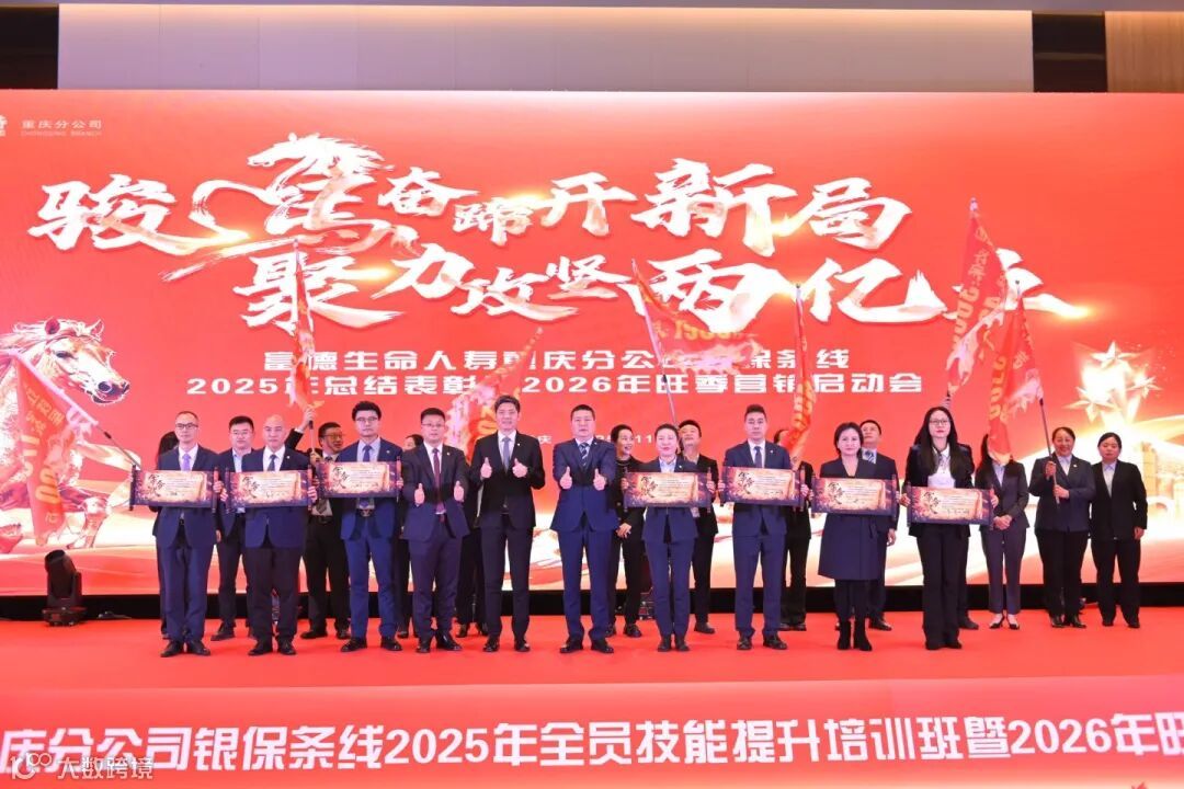 会议在全员齐声高呼“冲刺3个亿”的激昂口号中圆满结束。此次会议统一了思想、凝聚了共识、坚定了信心,重庆分公司银保条线全体将士将以“骏马奋蹄”之势,全力攻坚,确保圆满达成2026年旺季营销目标。