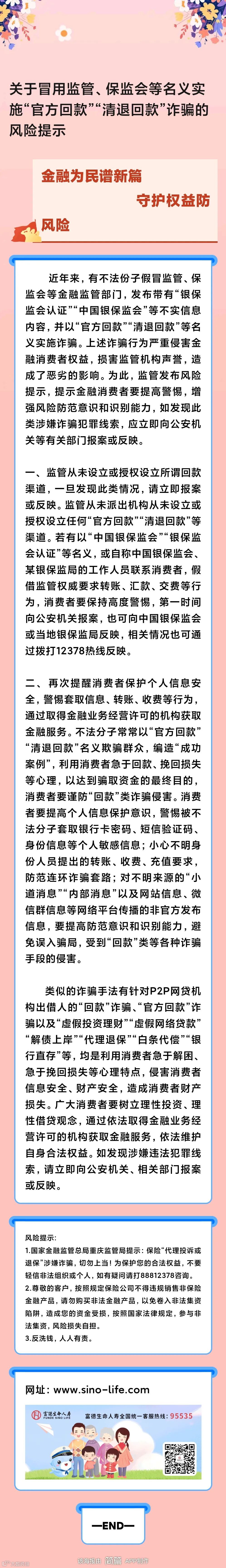 金融教育宣传月|关于冒用监管保监会等名义实施官方回款清退回款诈骗的风险提示