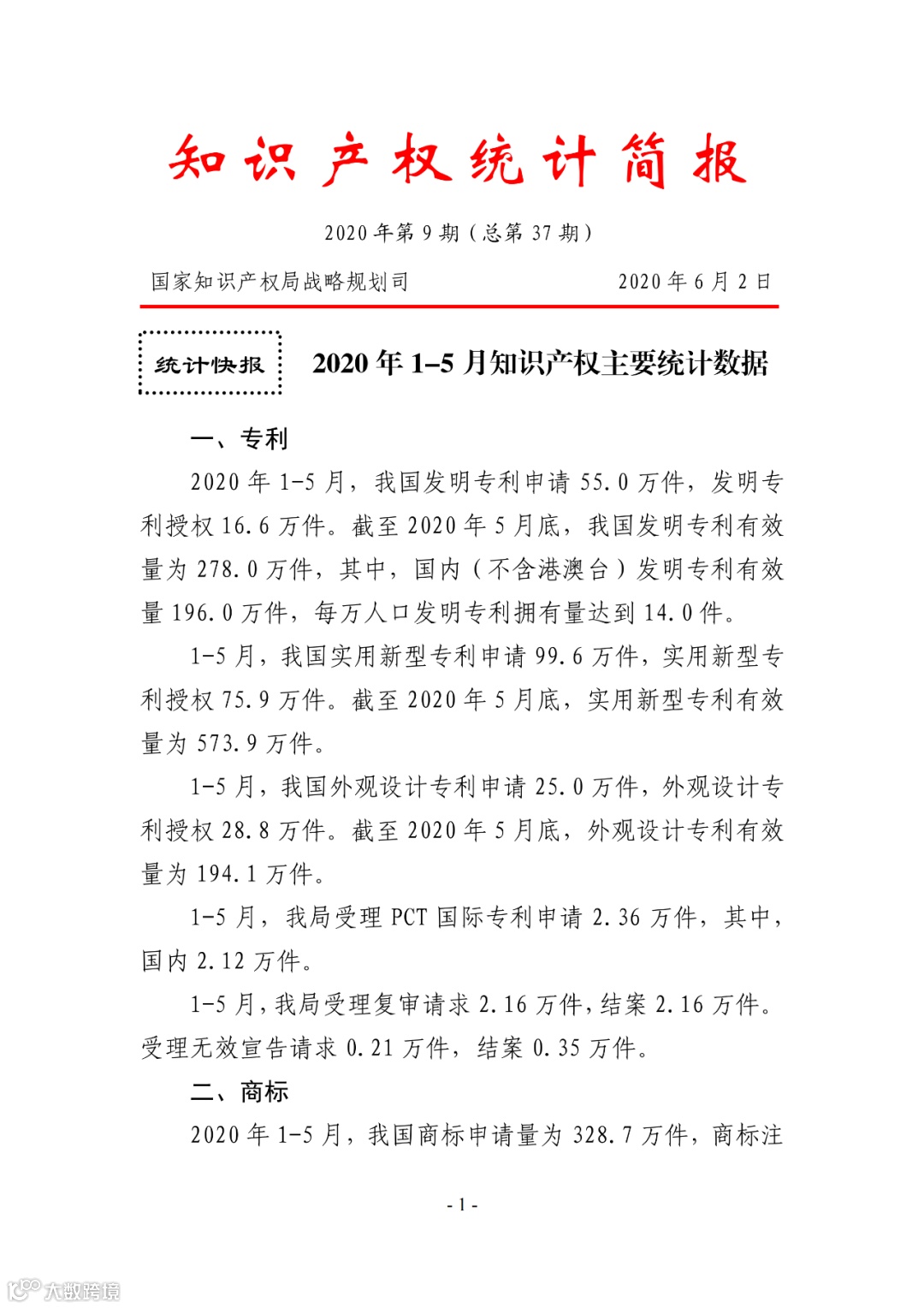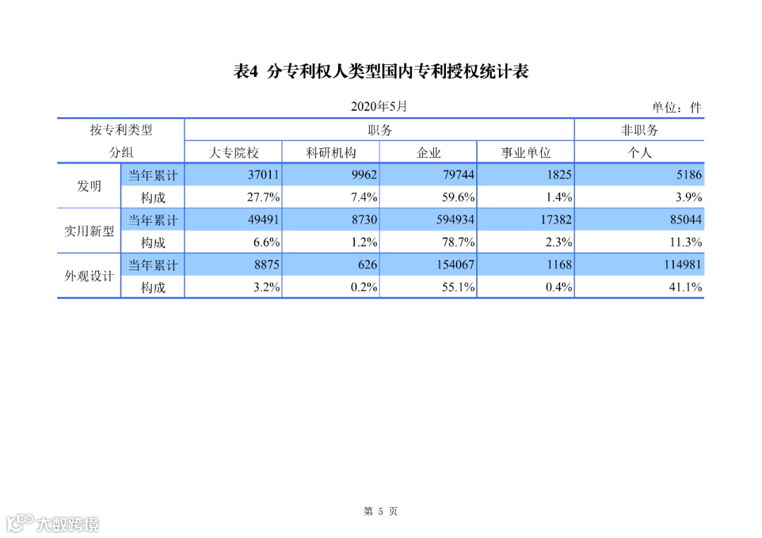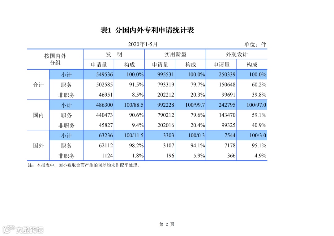 2020年1--5月知识产权主要统计数据