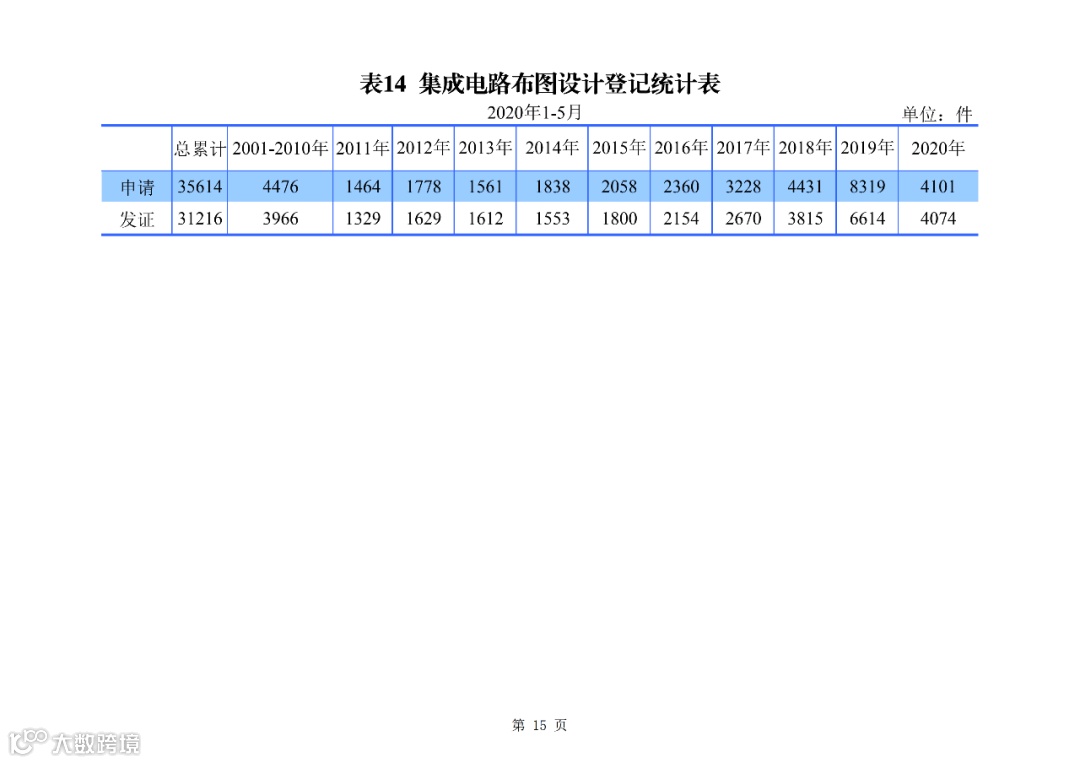 2020 年 1-5 月,我国集成电路布图设计登记申请 4101件,发证 4074 件。
