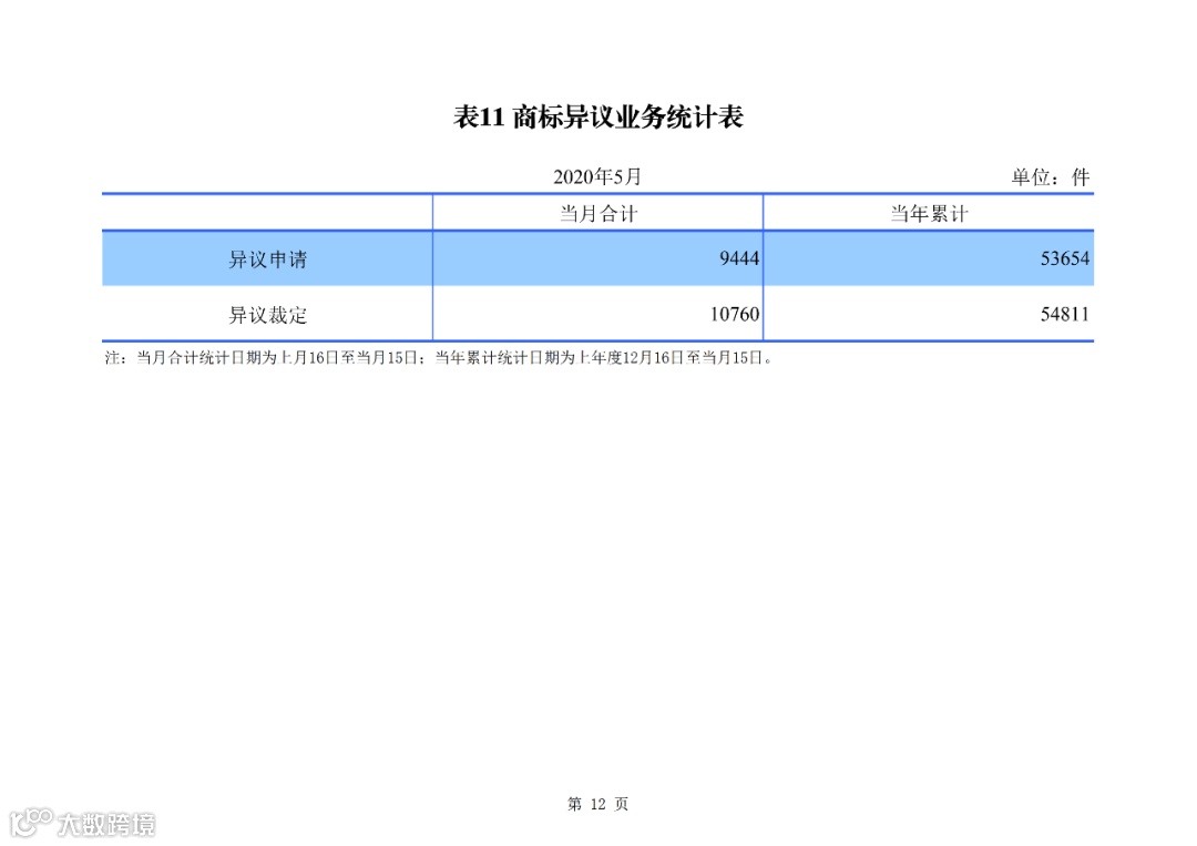 1-5 月,我国商标异议申请 5.4 万件,完成异议案件审查 5.5 万件。