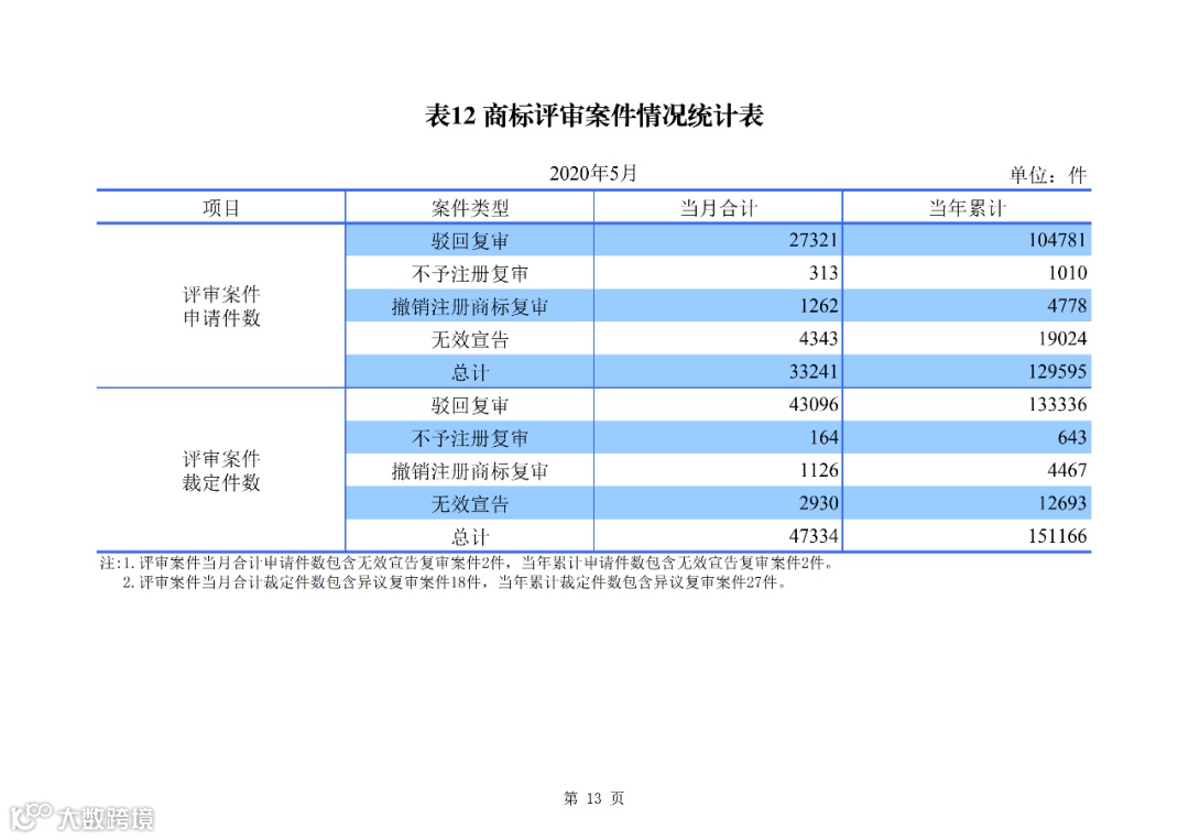 1-5 月,我局收到各类商标评审案件申请 13.0 万件,结案 15.1 万件。