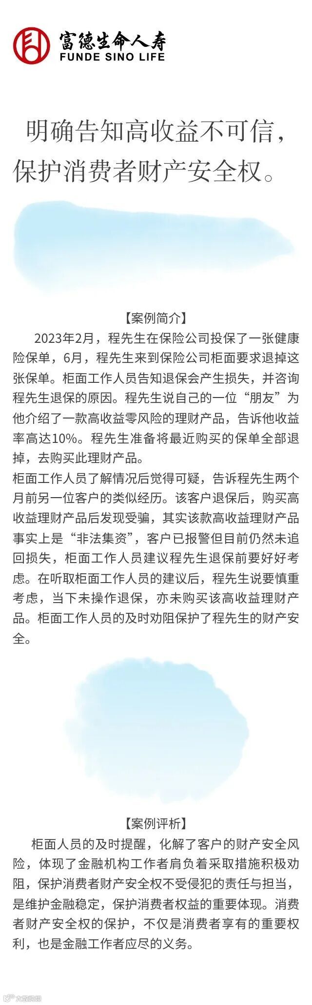 以案说险——明确告知高收益不可信,保护消费者财产安全权