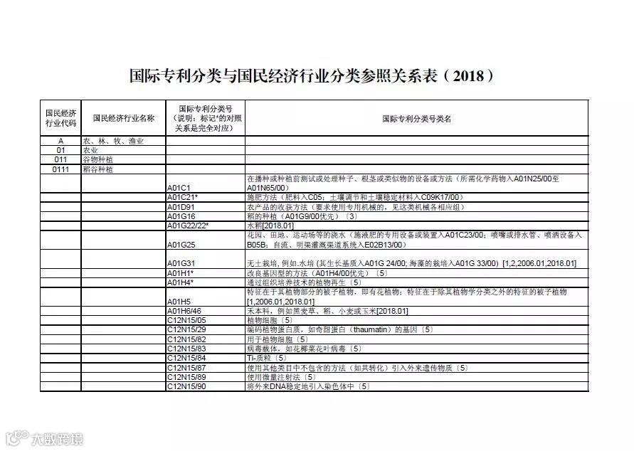为落实《“十三五”国家知识产权保护与运用规划》关于“加强专利活动与经济效益之间的关联评价”的要求,促进专利与产业发展相结合的创新驱动发展评价工作的顺利开展,实现专利与产业的对接,国家知识产权局制定了《国际专利分类与国民经济行业分类参照关系表(2018)》(以下简称《2018年参照关系表》)。