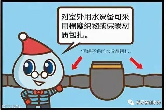 对暴露在室外的水管、水表、水龙头等用水设施,可以使用棉麻织物、塑料泡沫进行包扎保温。