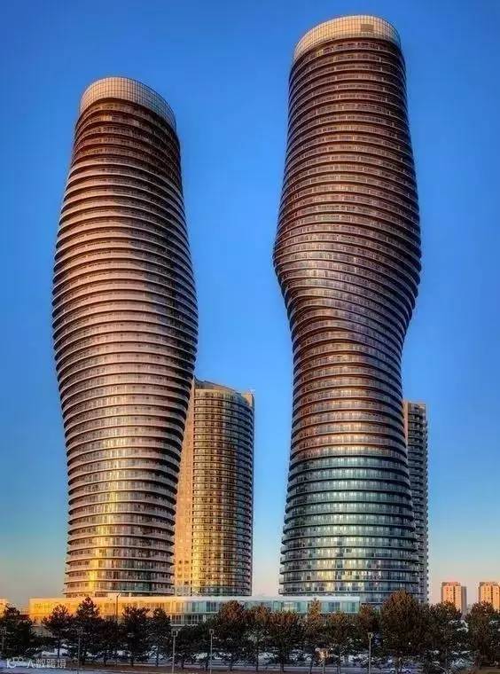 这是加拿大安大略省的一个双子公寓楼,弯曲的形状仿佛橡皮泥被捏出来的样子。