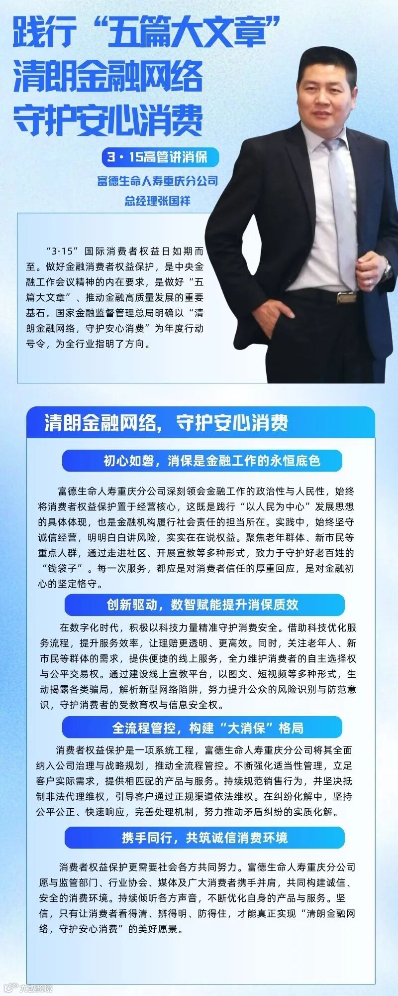 富德生命人寿重庆分公司2026年“3·15”教育宣传活动丨高管说消保:践行“五篇大文章”,清朗金融网络,守护安心消费