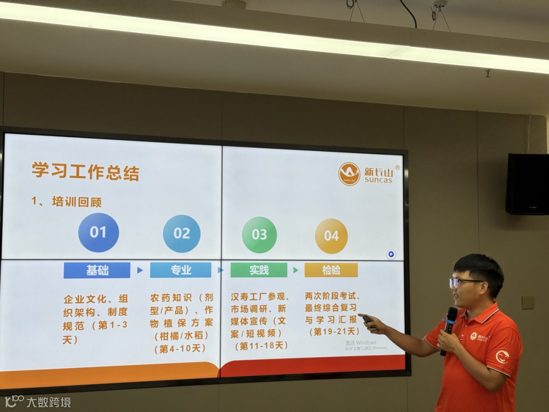 培训尾声,设置了系统性考试与学习成果汇报,涵盖企业文化、产品知识、新媒体技能、市场调研等内容。