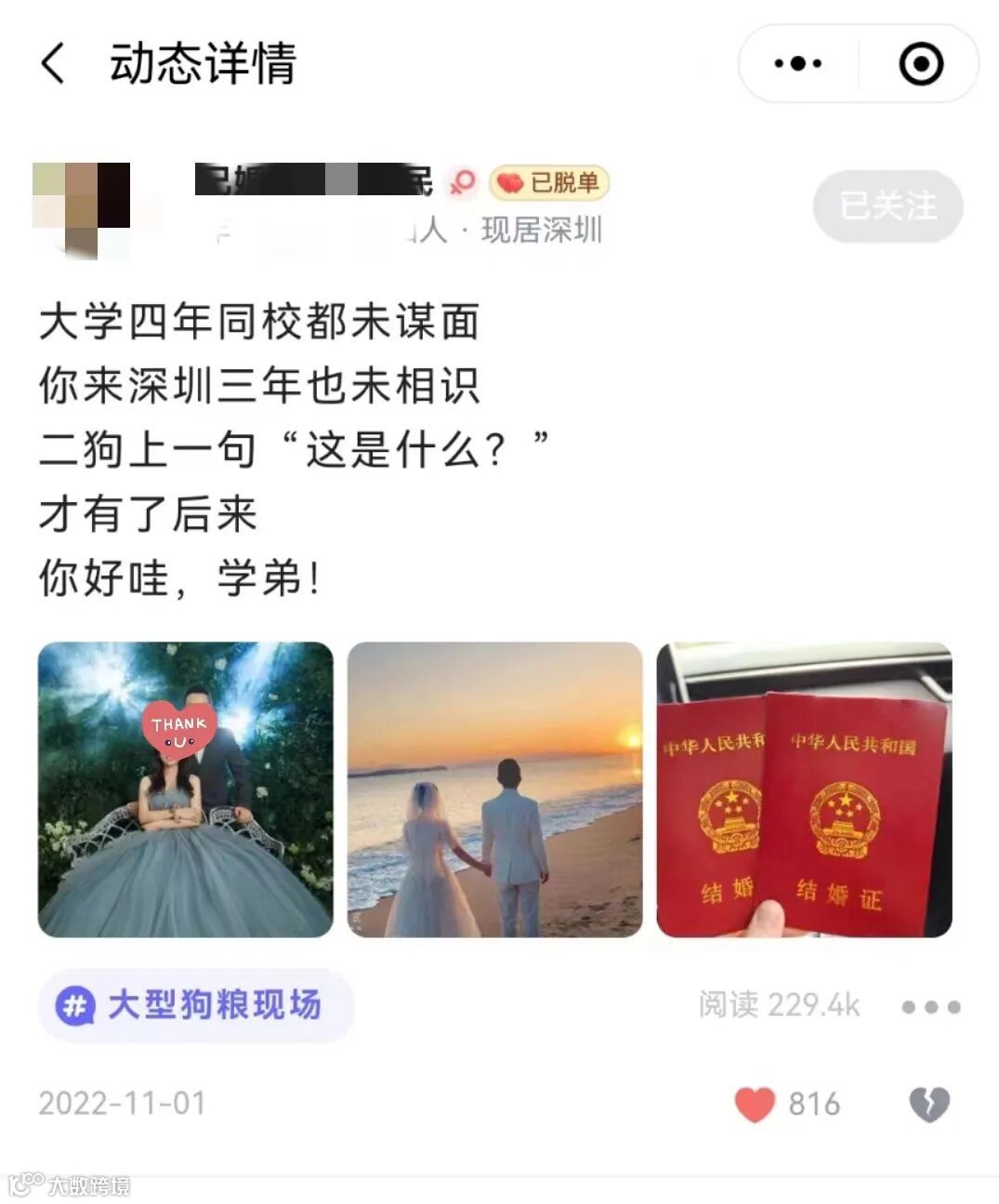 来二狗星球看更多脱单故事,沾沾喜气~