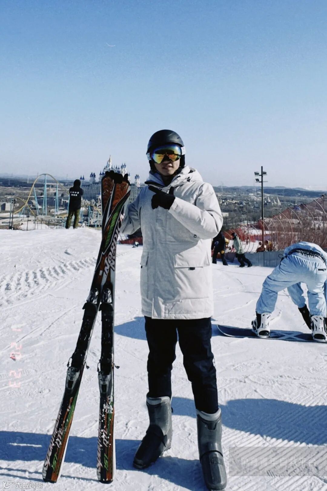 除了上班,我喜欢健身、户外活动和旅游。户外活动有游泳,滑雪,拳击,滑翔伞,飞盘,滑板,冲浪等等。