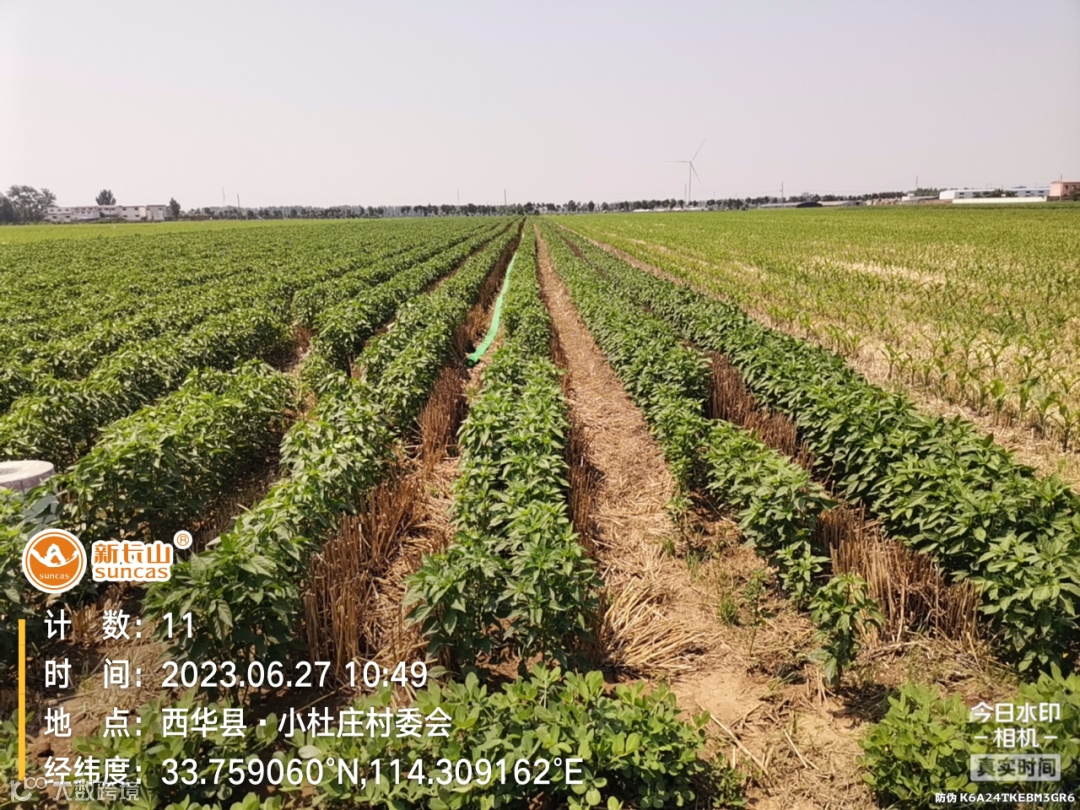 新长山农学家在河南省西华县建立了四处套播辣椒高标准管理示范田,对朝天椒的高标准管理进行了大力探索研究。