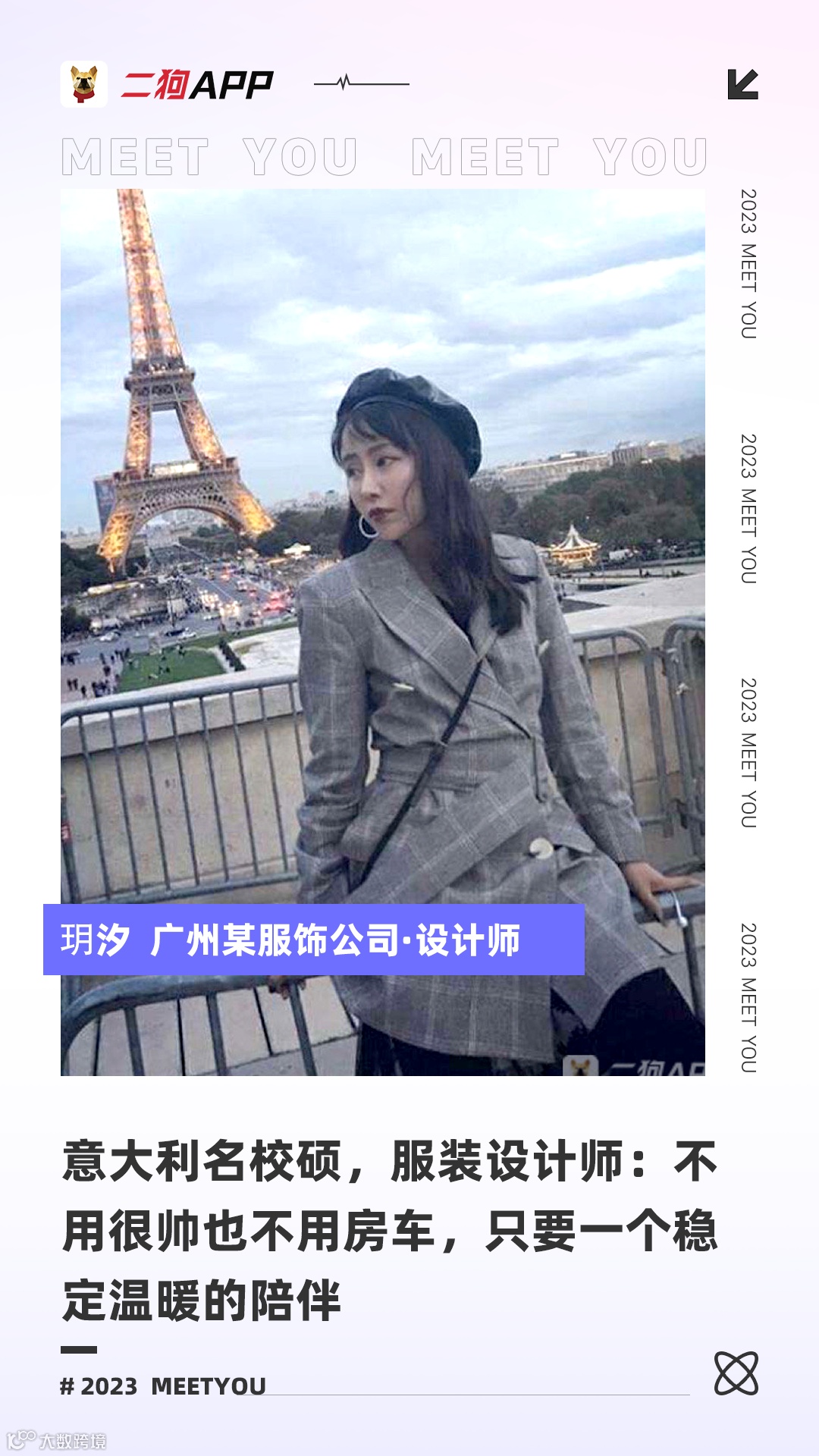 服装设计师一枚,有一点工作狂,比较独立,性格可静可动可癫狂,同时也热爱生活,爱小动物, 爱美食…