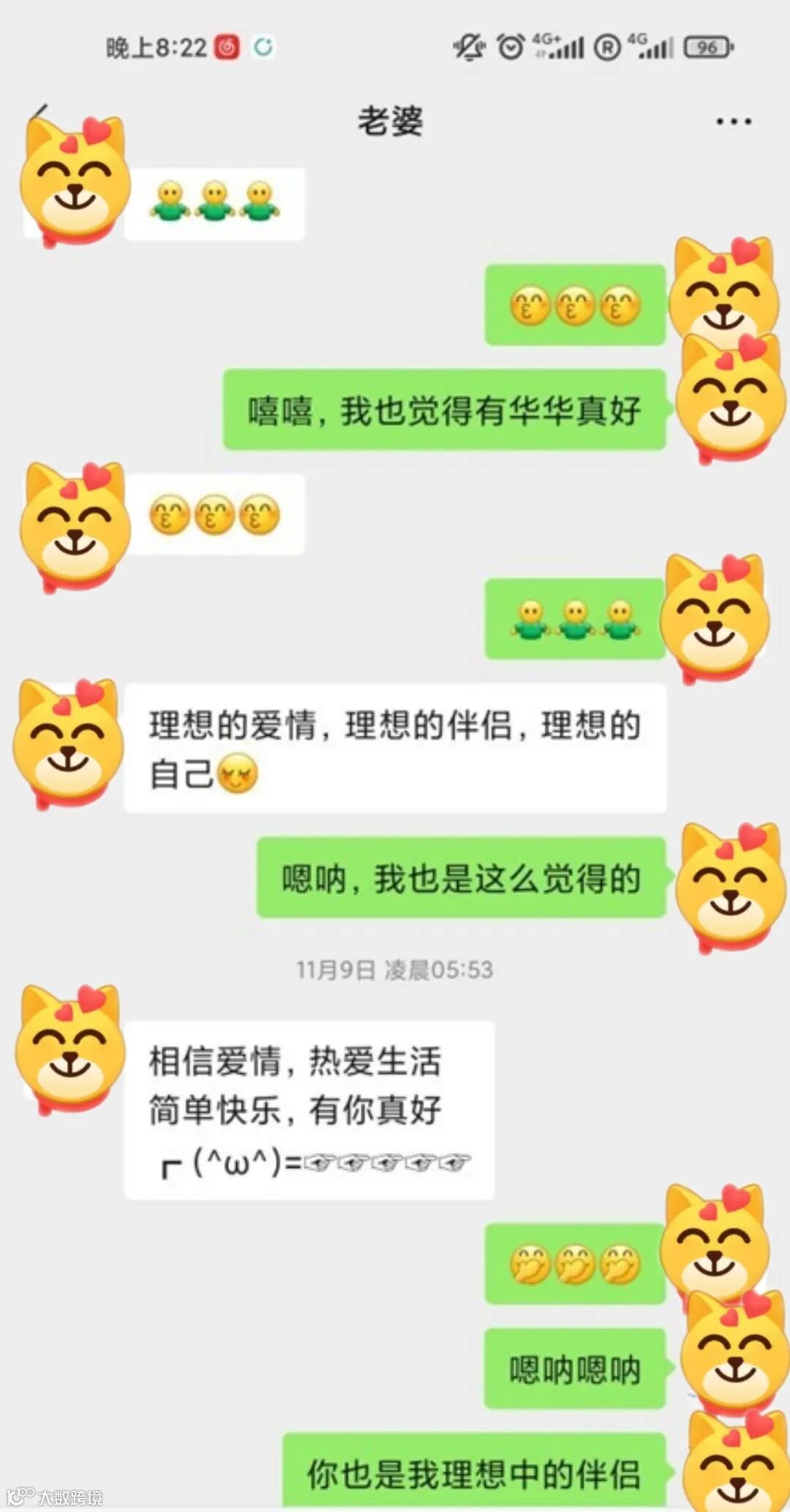 她乐观积极向上,遇事不抱怨,同理心强,能很好的换位思考,对我很温柔(哈哈,对于温柔的另一半毫无抵抗力)。总结一句话就是:各方面都远超我理想中的另一半(不过有个缺点是,答应我要好好看书,结果看一会儿就小猫钓鱼了)