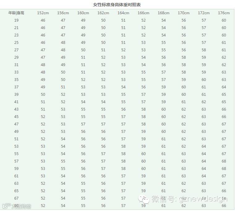 女性标准身高体重对照表