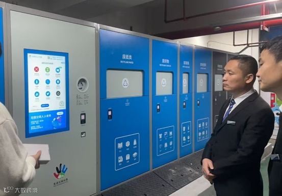 面对商住混合、人员流动性大的环球中心,江厦街道则采用了“智能设备筑基、物业管理固本”的现代化策略。物业公司主动作为,充分发挥智能回收箱的支点作用,为住户和商户提供便捷的自助投放与即时激励服务。