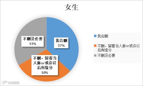 女生中,37%表示会删除,33%表示“不删没必要”,30%表示“不删留着以后”。
