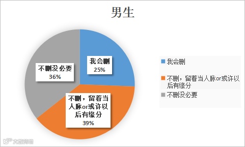 男生中,25%表示会删除,36%表示“不删没必要”,39%表示“不删留着以后”。