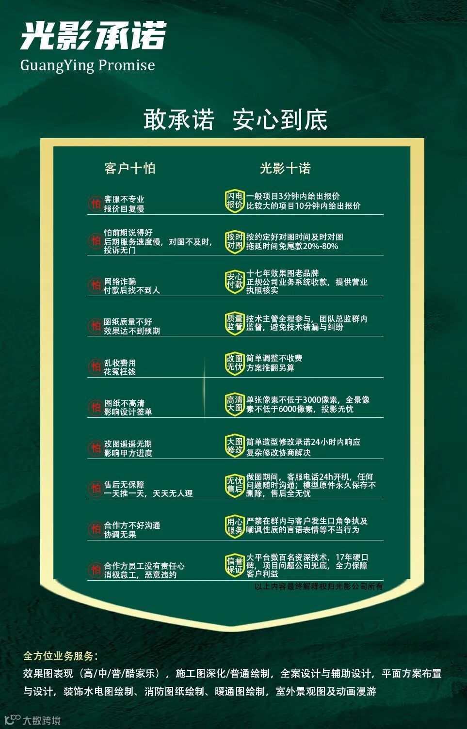 效果表现|施工图绘制与深化|全案设计|室外景观表现|建筑外立面|建筑动画|水电|消防|暖通|盖章