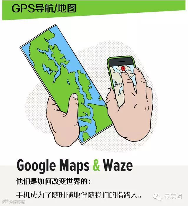 易于访问的地图,再加上免费的导航服务,让Google Maps打败了顶级的GPS服务商(比如Tom Tom和Garmin),让它们无法得到智能手机用户。