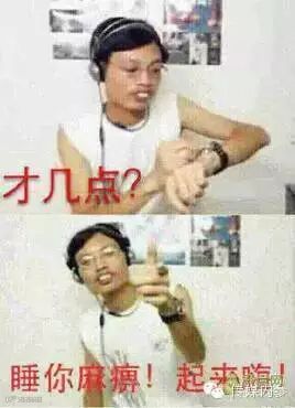 中文释义:别再睡了,快起来耍!接着就有了一句,嗨你麻痹滚去睡。