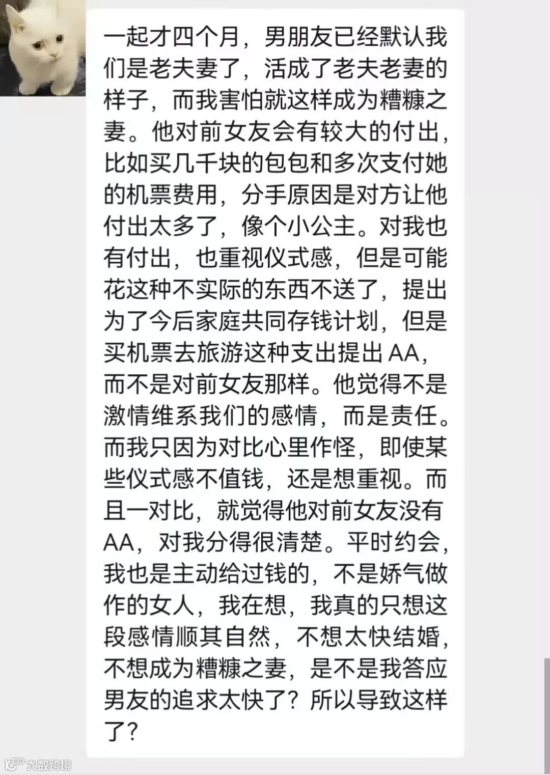 【匿名故事屋】和男朋友在一起四个月,他已经默认我们是老夫老妻了,而我害怕就此成为糟糠之妻。他对前女友付出很多,可是对我的付出很克制。他觉得不是激情维系我们的感情,而是责任。