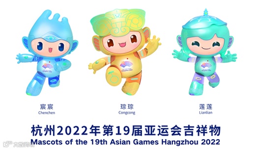 2022年第19届亚运会吉祥物于线上正式向全球发布。杭州亚运会吉祥物是一组名为“江南忆”的机器人。三个吉祥物分别取名“琮琮”、“莲莲”、“宸宸”。