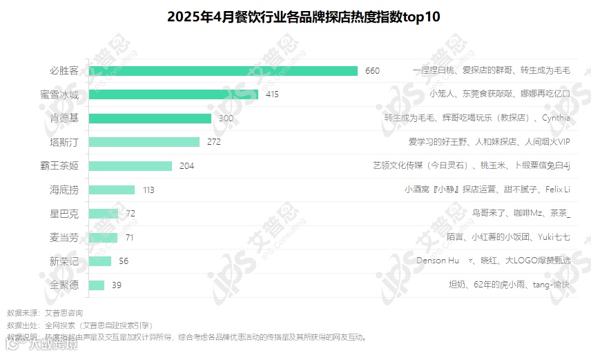 图3.2025年4月餐饮行业各品牌探店热度指数top10