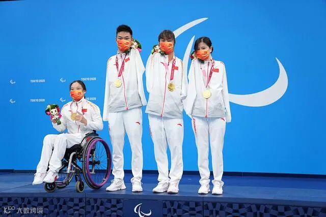 ▲8月26日,在东京残奥会游泳男女混合4X50米自由泳接力20分决赛中,中国队选手张丽、郑涛、袁伟译、卢冬(从左至右)获得冠军并打破世界纪录。新华社记者 熊琦 摄