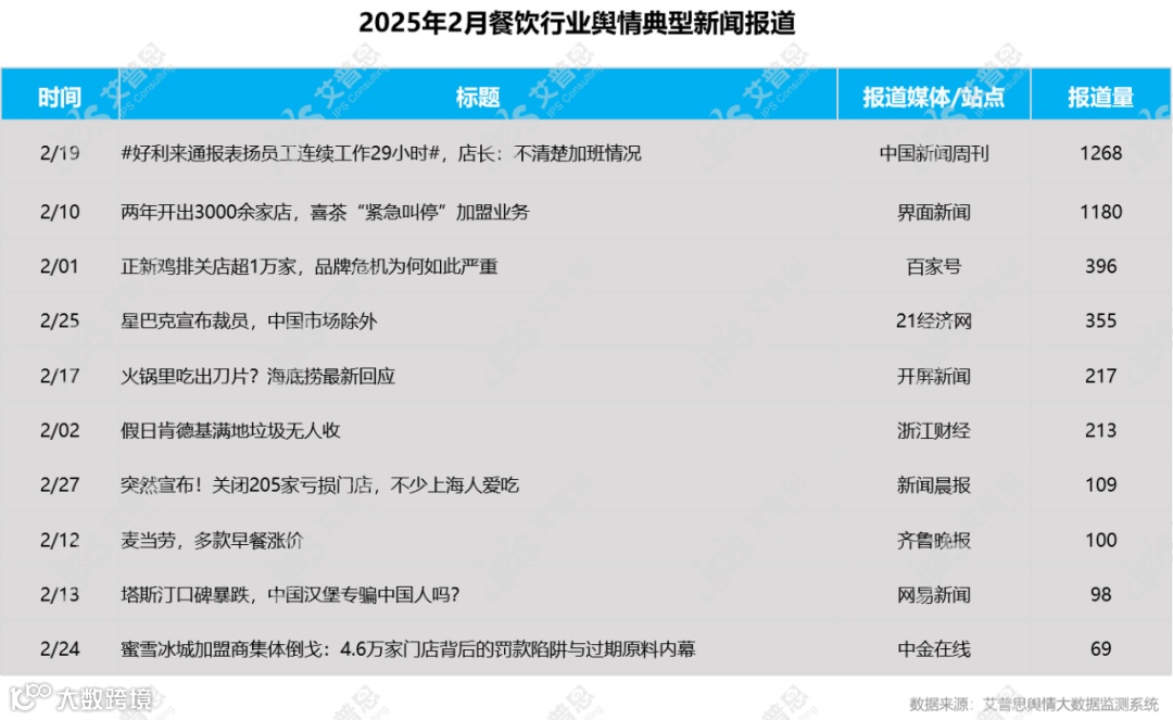 以上内容节选自《艾普思咨询:2025年2月餐饮行业舆情监测报告》(全文21页,共5,989字)。