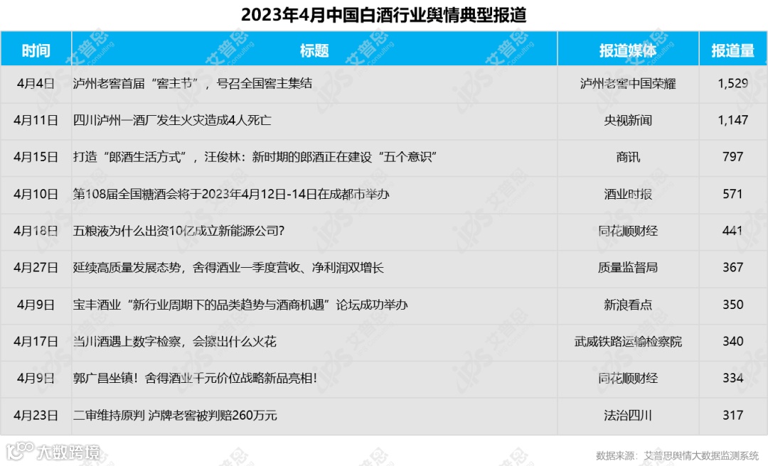 图5:2023年4月中国白酒行业舆情典型报道