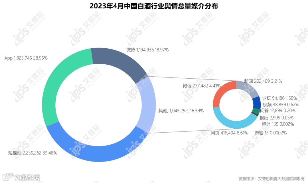 图3:2023年4月中国白酒行业舆情总量媒介分布