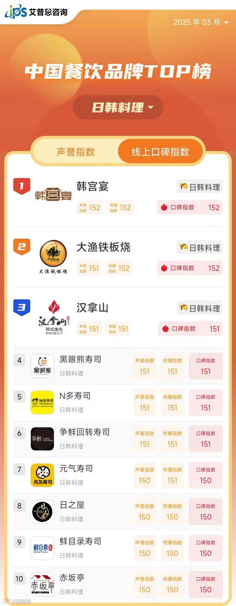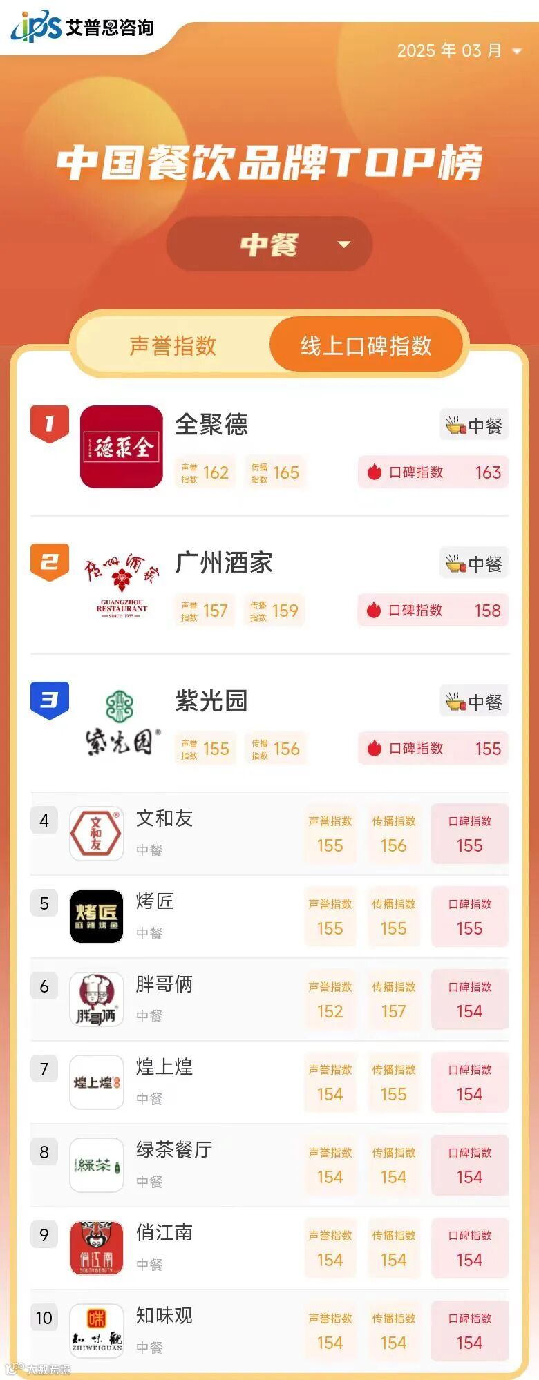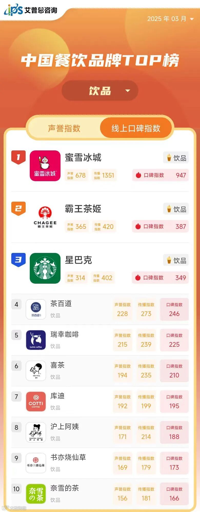 线上口碑指数TOP10
