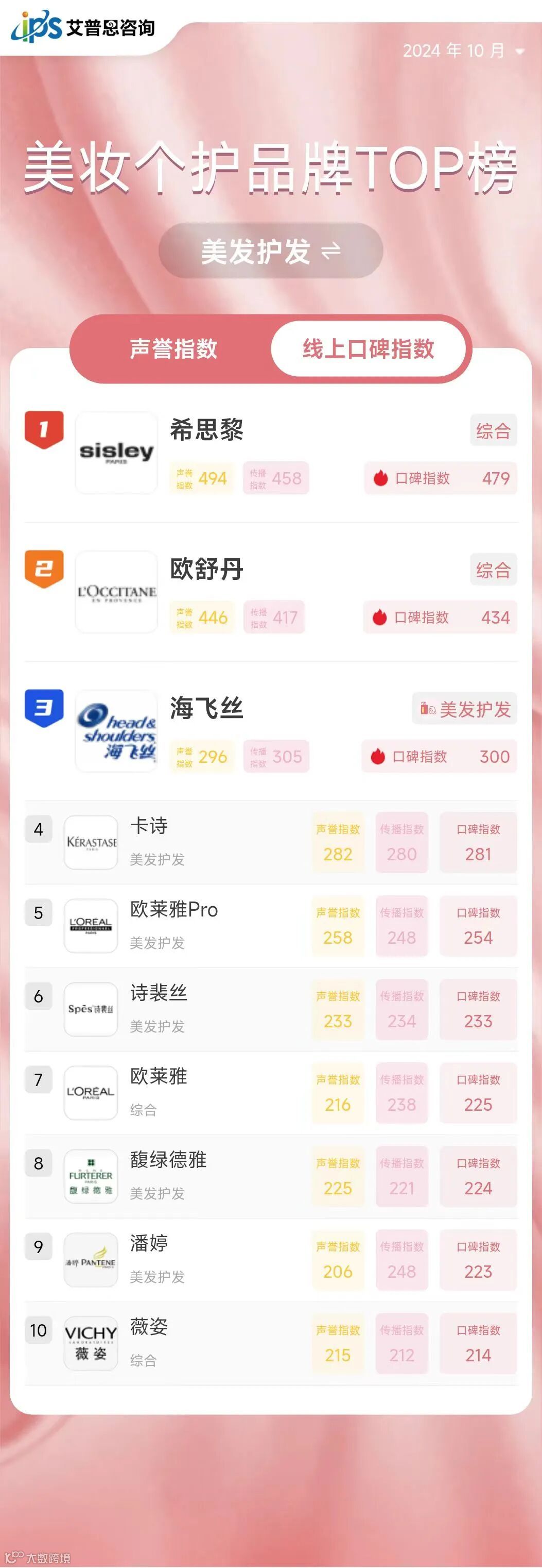 线上口碑指数TOP10