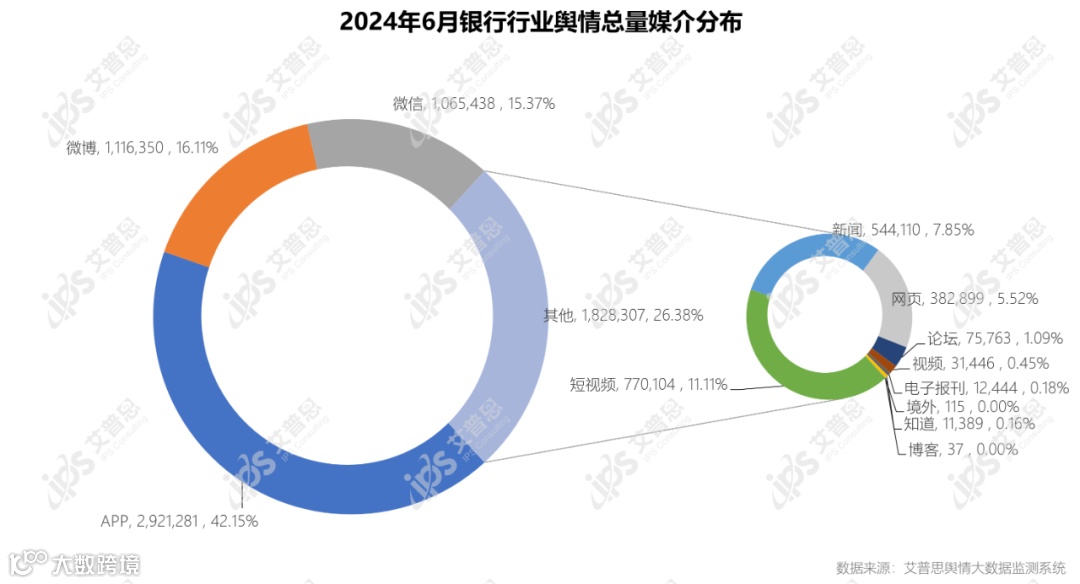 图3:2024年6月银行行业舆情总量媒介分布