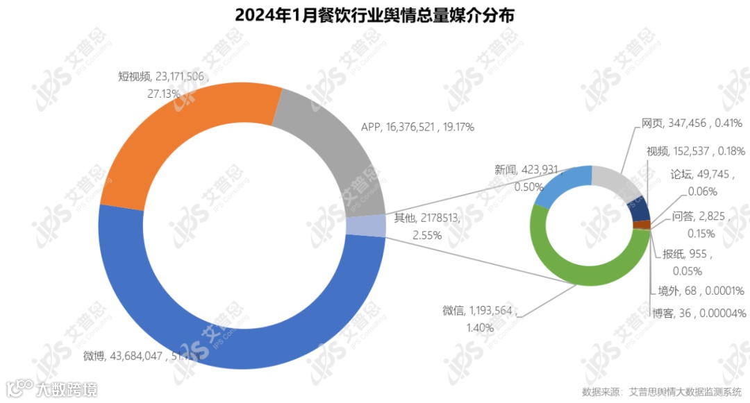 图3:2024年1月餐饮行业舆情总量媒介分布