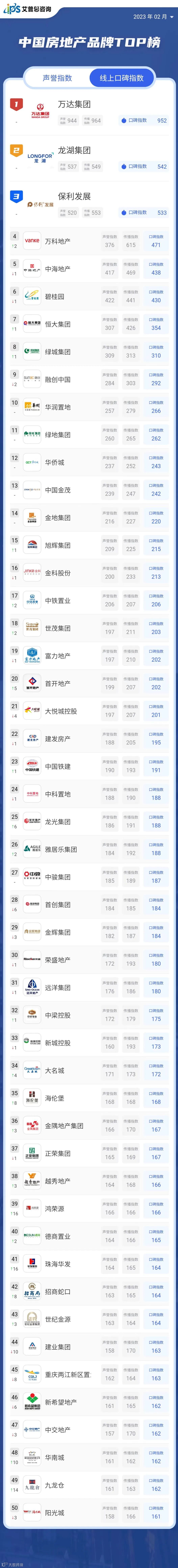 艾普思指数 | 2022中国房地产品牌线上口碑指数年度排行榜