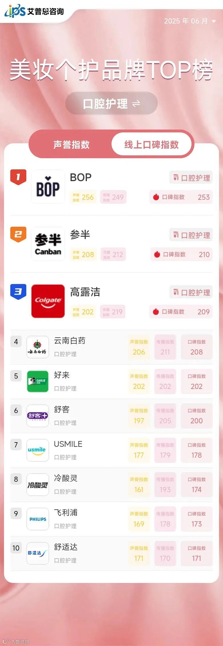 线上口碑指数TOP10
