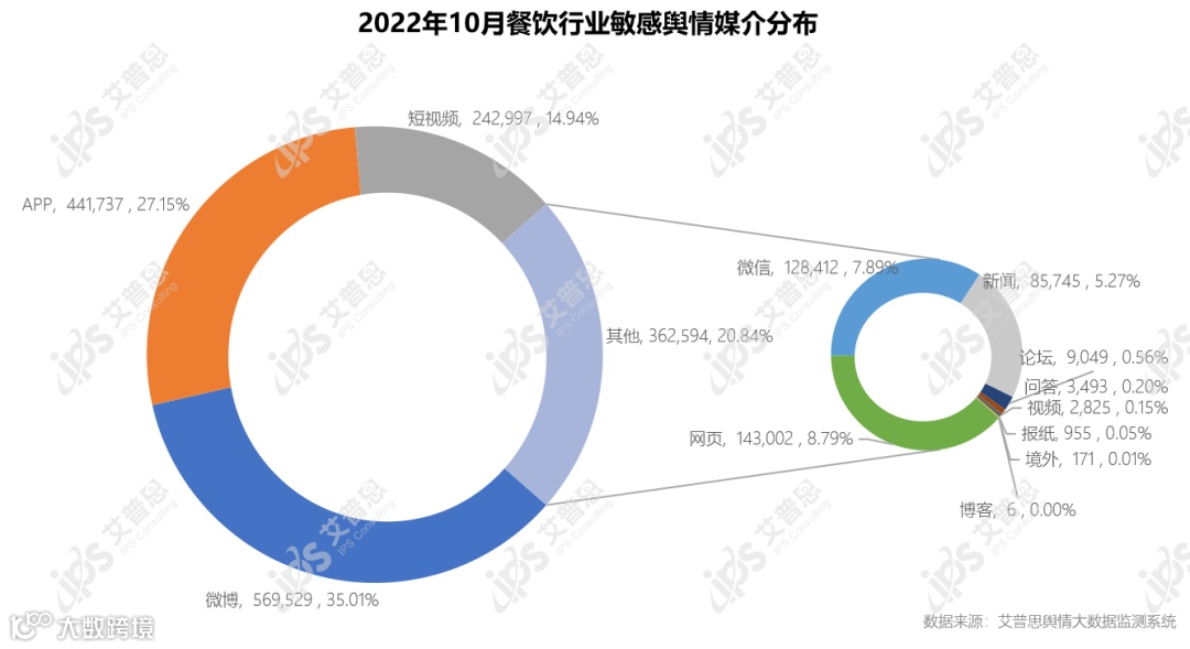 图3 2022年10月餐饮行业舆情总量媒介分布