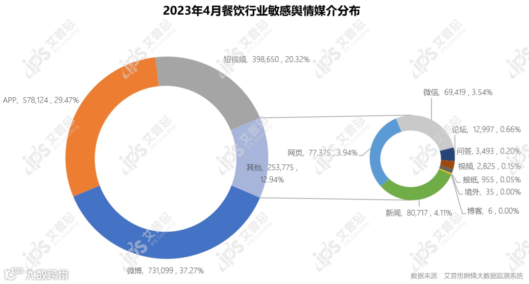 图4:2023年4月餐饮行业敏感舆情媒介分布
