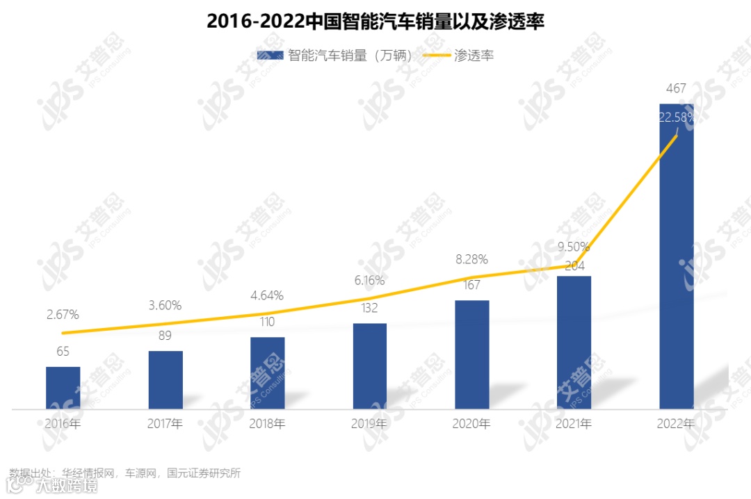 注:渗透率=智能汽车销量/汽车总体销量