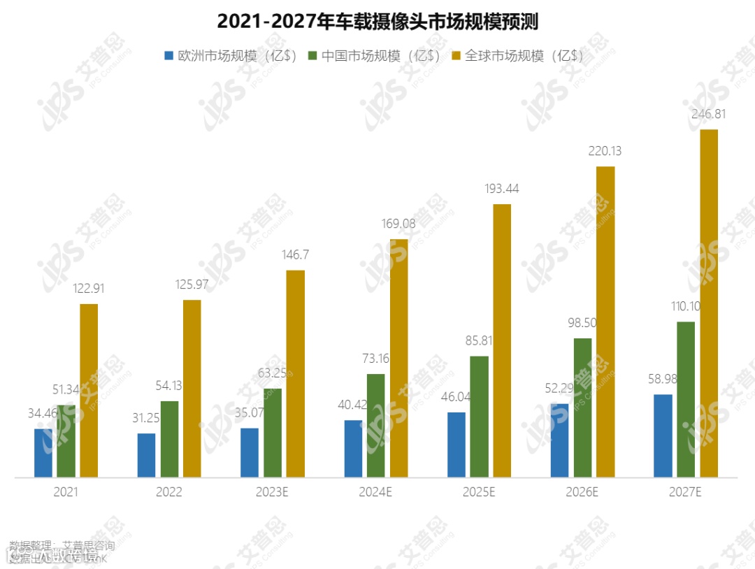 车载摄像头是高级驾驶辅助系统(ADAS)的重要组成部分。2022车载摄像头年全球市场规模约